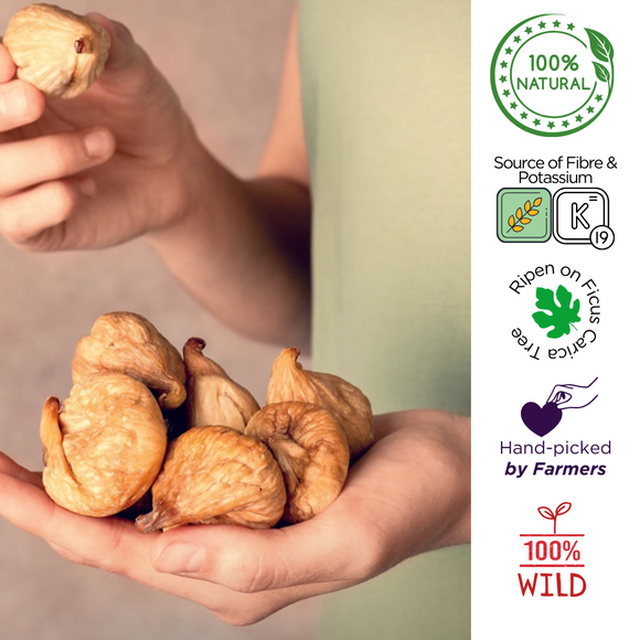 100% natural sun-dried and tree-ripened beauties are very rich in flavor with a chewy, mild texture. Bringing a sweet, savoury taste, they’re the shining stars of cheese platters, serve as dessert with cream, drunk figs in port, vodka, or rum, or dip in chocolate and devour.
